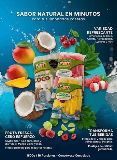 Expertos en pulpas y limonadas, con más de 9 años de experiencia en la industria alimenticia, ofreciendo productos novedosos y prácticos para satisfacer todas tus necesidades.